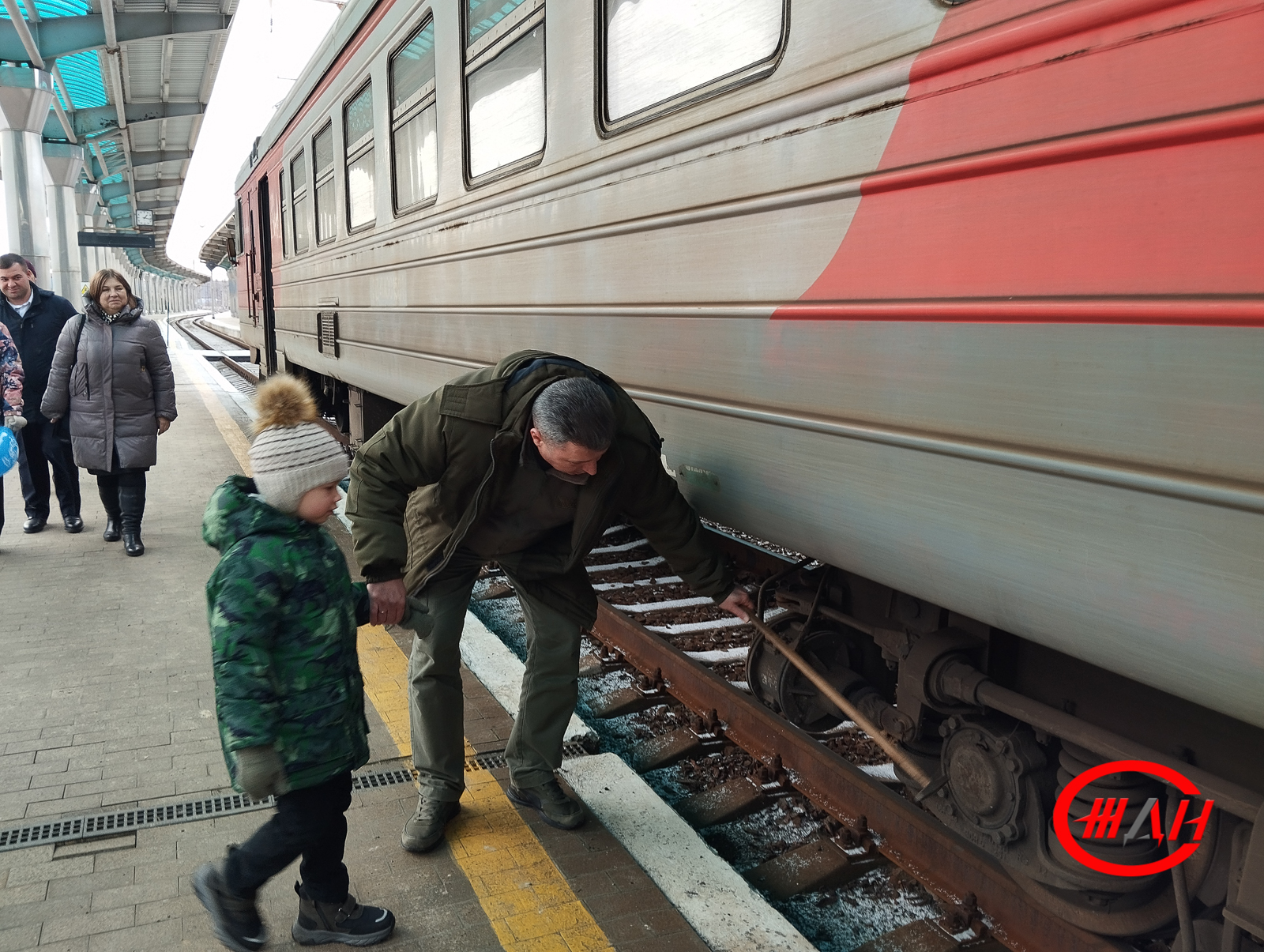 Маленького мечтателя встретил начальник Донецкого филиала ФГУП «Железные дороги Новороссии» Евгений Синельник.