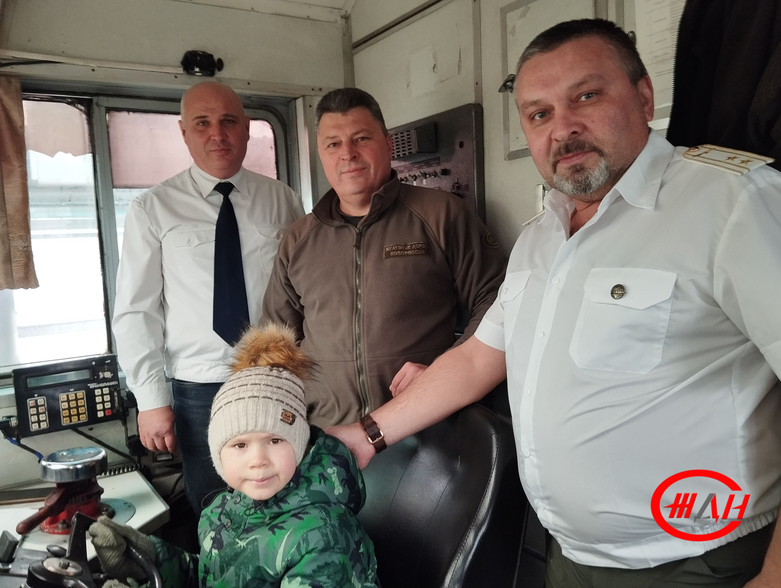 Удивительным подарком для Артема и его сестры Дарины стало посещение кабины машиниста настоящего электровоза. Мальчик чувствовал себя настоящим железнодорожником – он с восторгом давал мощный сигнал и делал объявления по громкой связи.